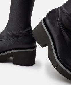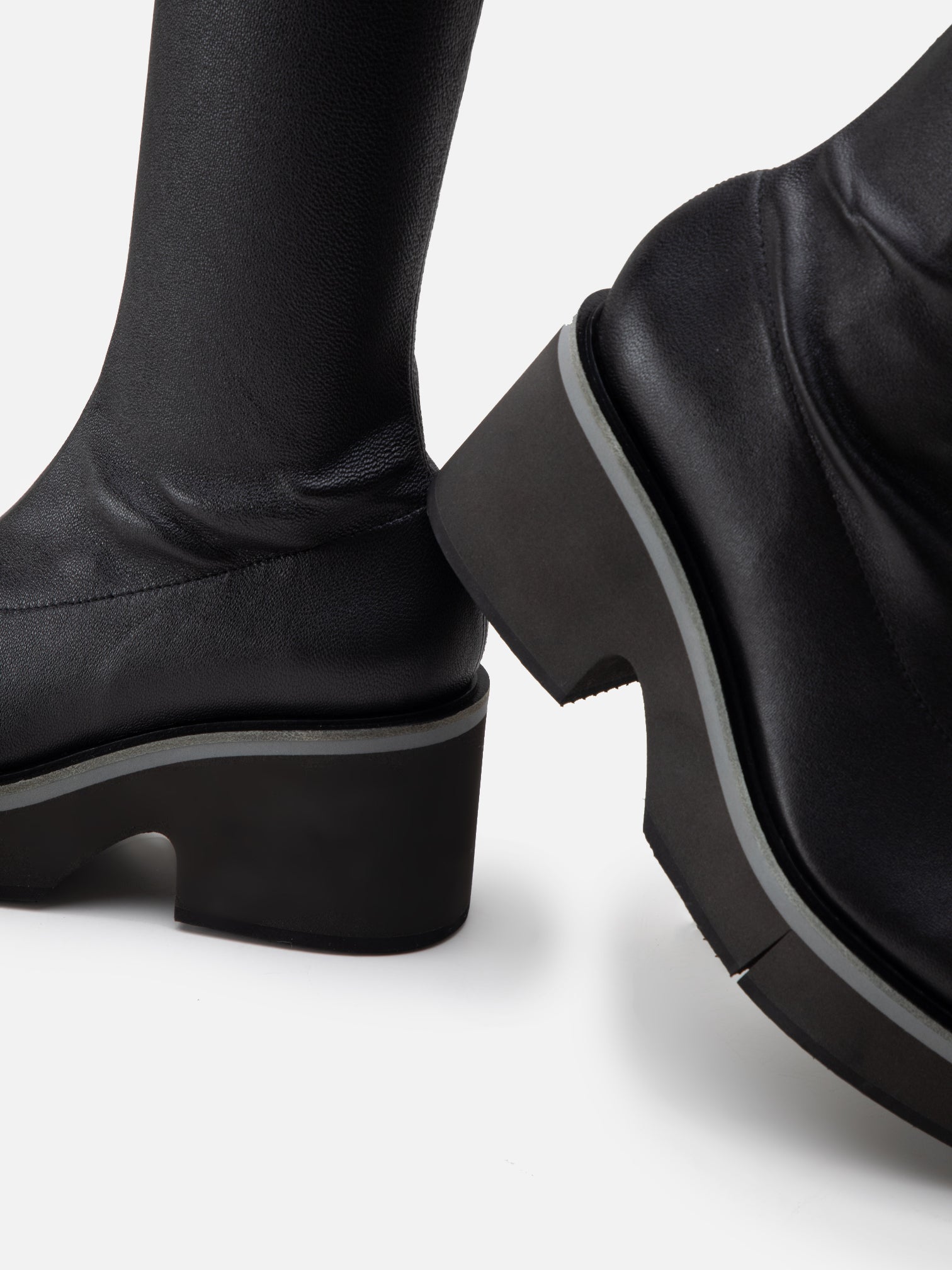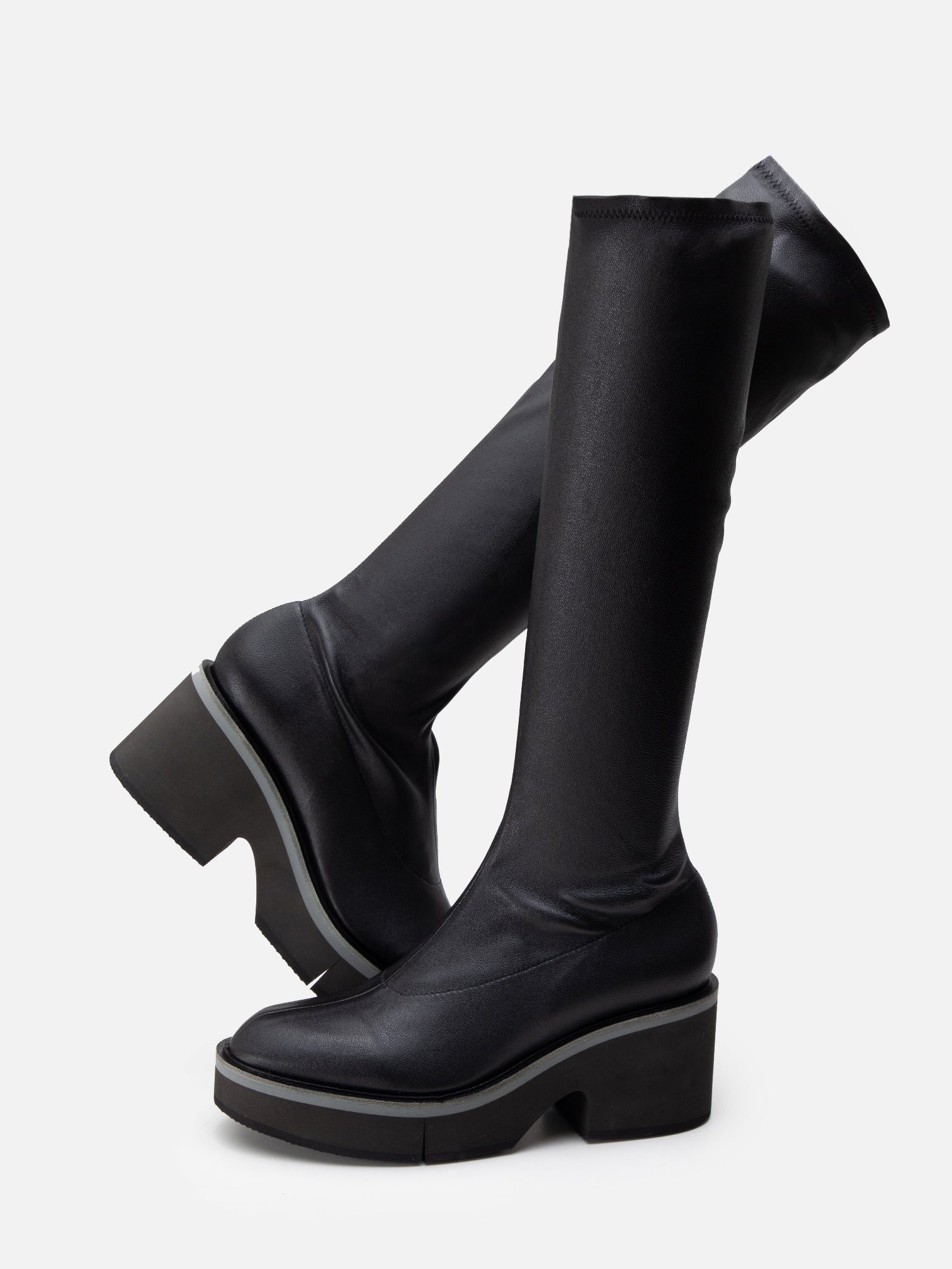Upper: black stretch lambskin / Lining: black goatskin lining / Sole: black welt, anthracite EVA platform, black sole