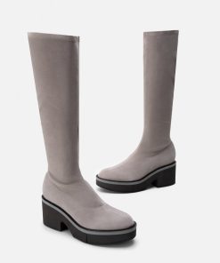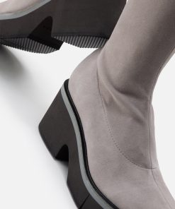 Upper: stone stretch suede lambskin / Lining: black goatskin lining / Sole: black welt, anthracite EVA platform, black sole
