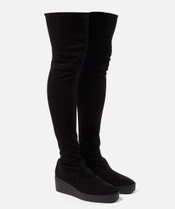 Clergerie Women’s Shoes High Boots Lorna High Boots, Stretch Suede Lambskin Black