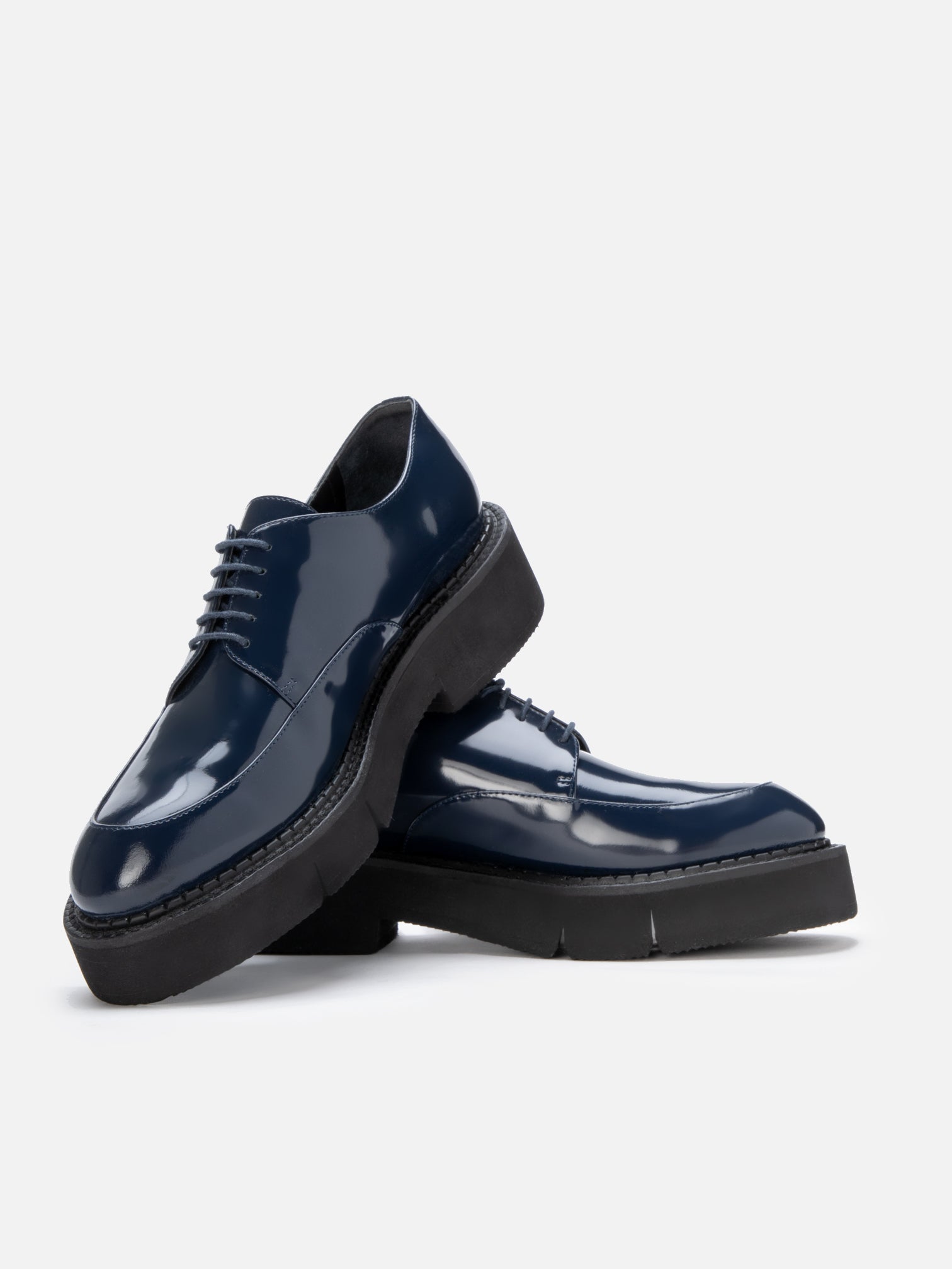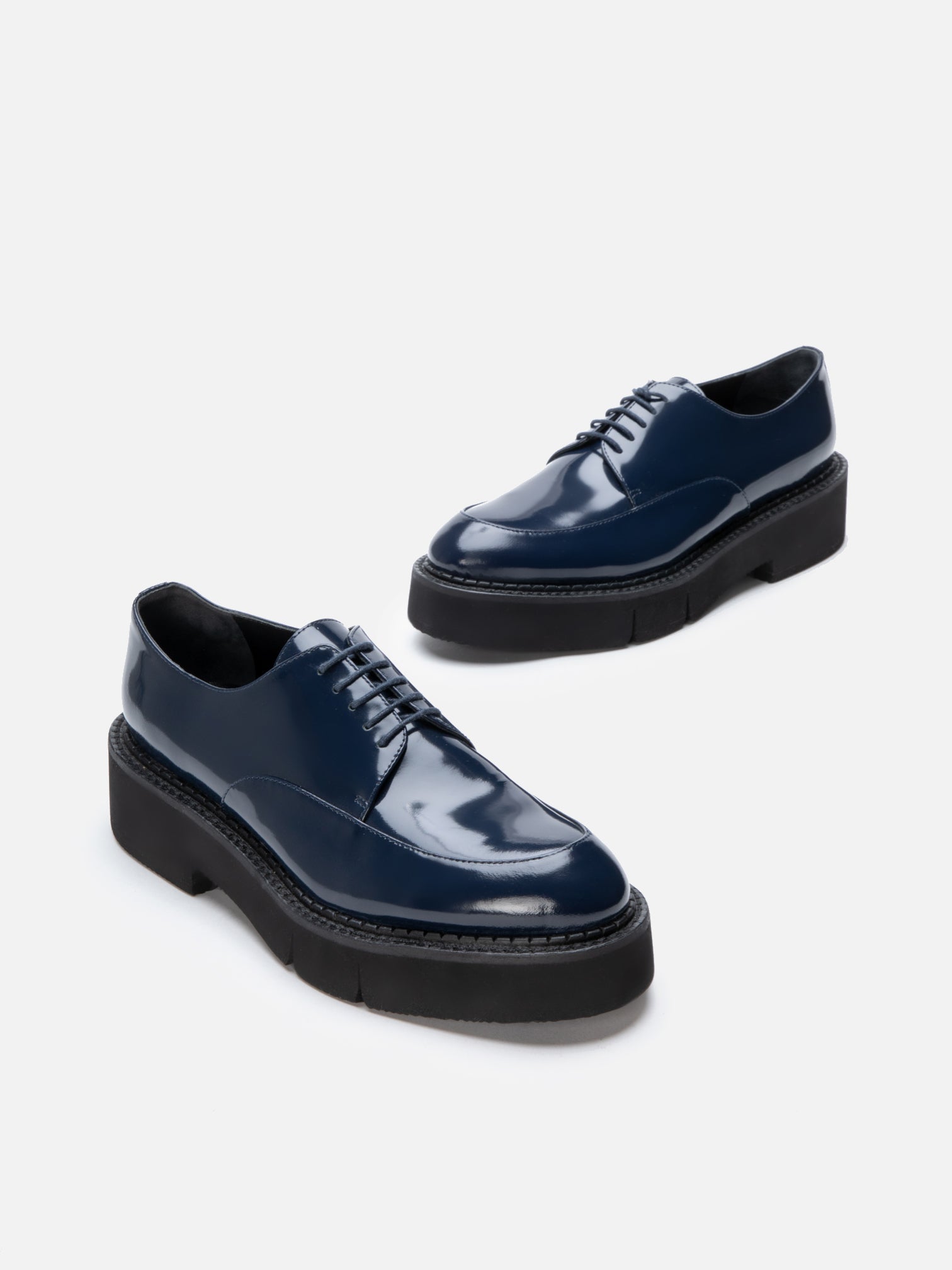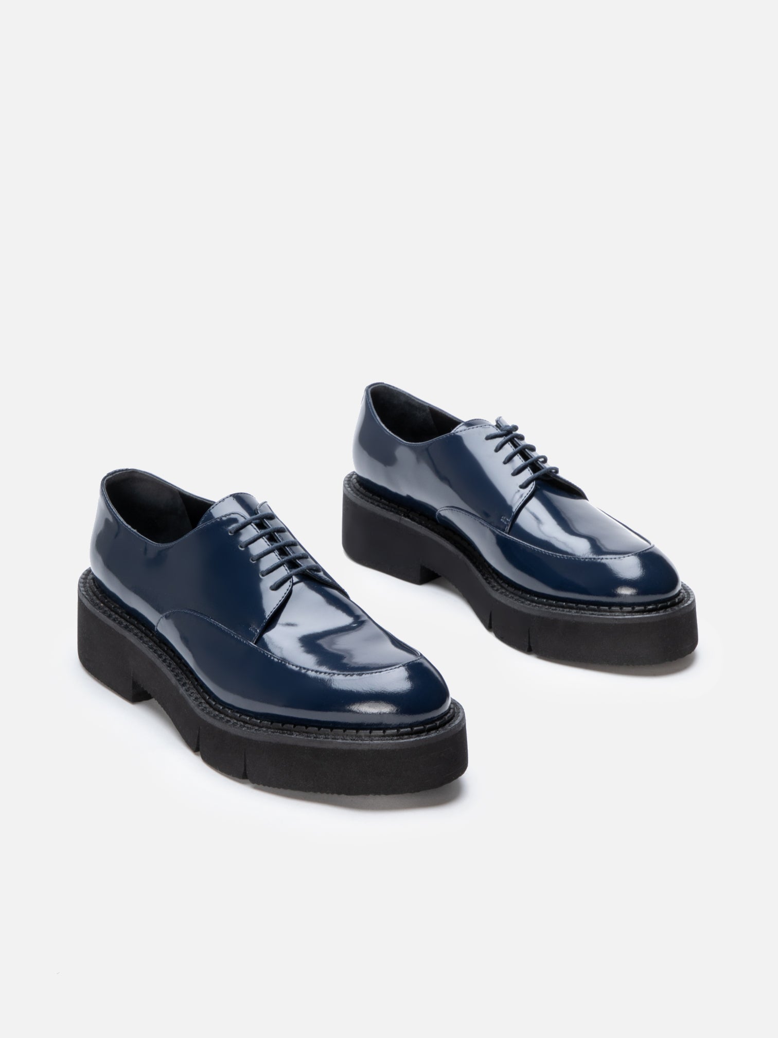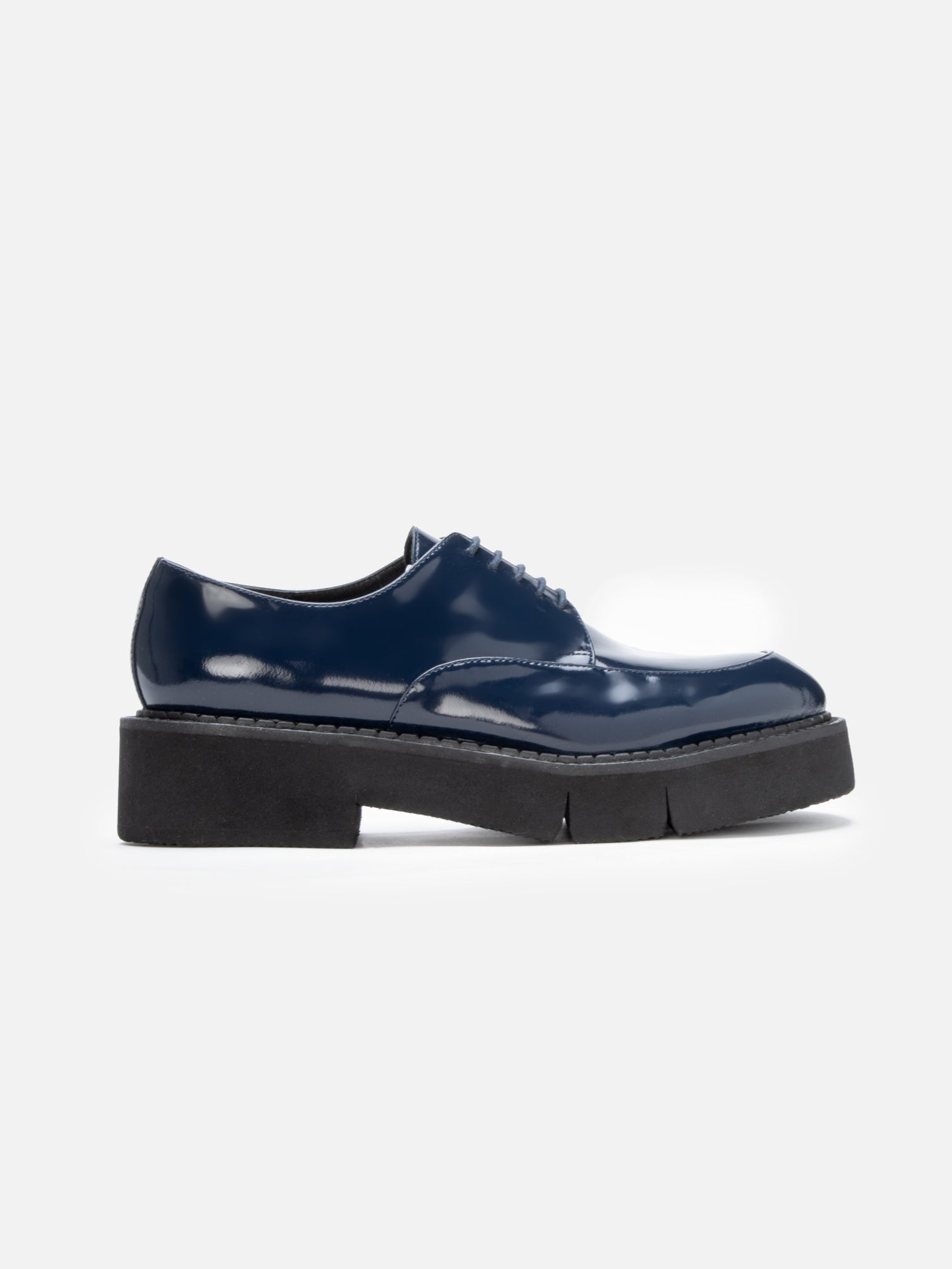 Upper: mineral glossed calfskin / Lining: black goatskin lining / Sole: black welt, black EVA flatform, anthracite sole