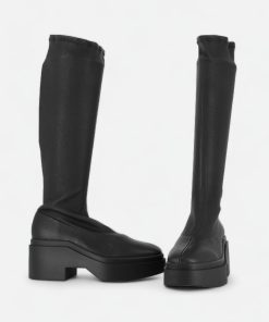Clergerie Women’s Shoes High Boots Lorna High Boots, Stretch Suede Lambskin Black