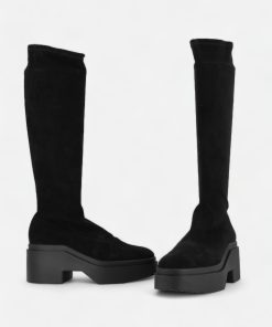 Clergerie Women’s Shoes High Boots Lorna High Boots, Stretch Suede Lambskin Black