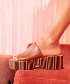 Upper: Wood lambskin / Lining: Black crust lambskin / Sole: Dark brown and black stacked leather platform, arizona sole, black edge