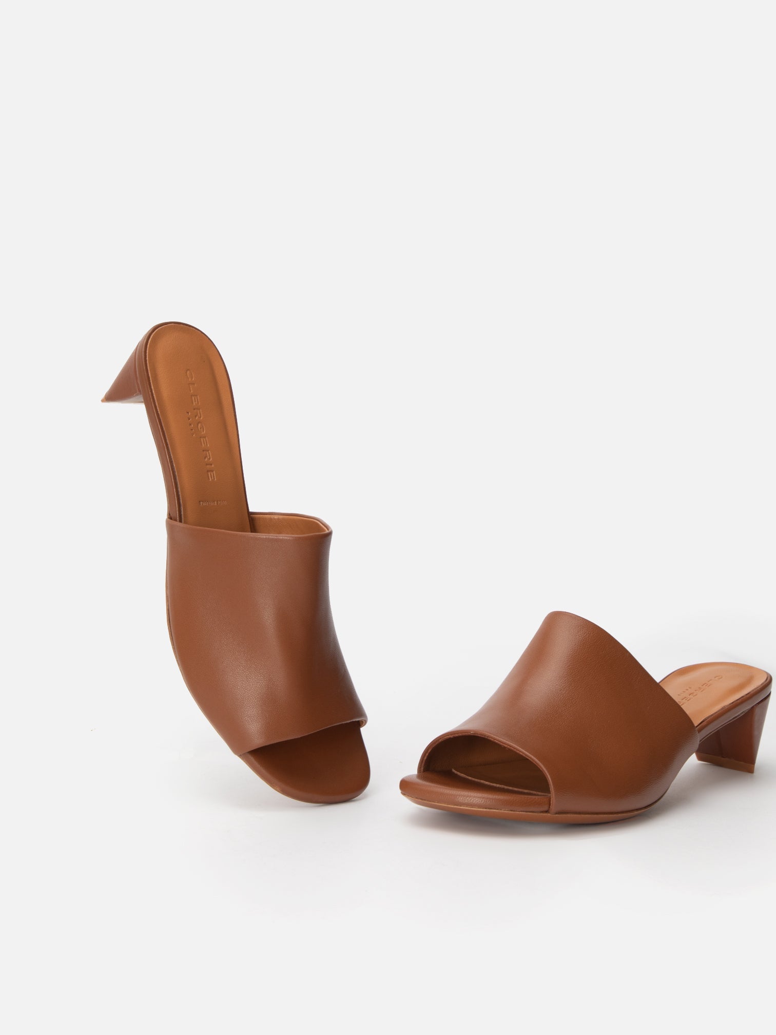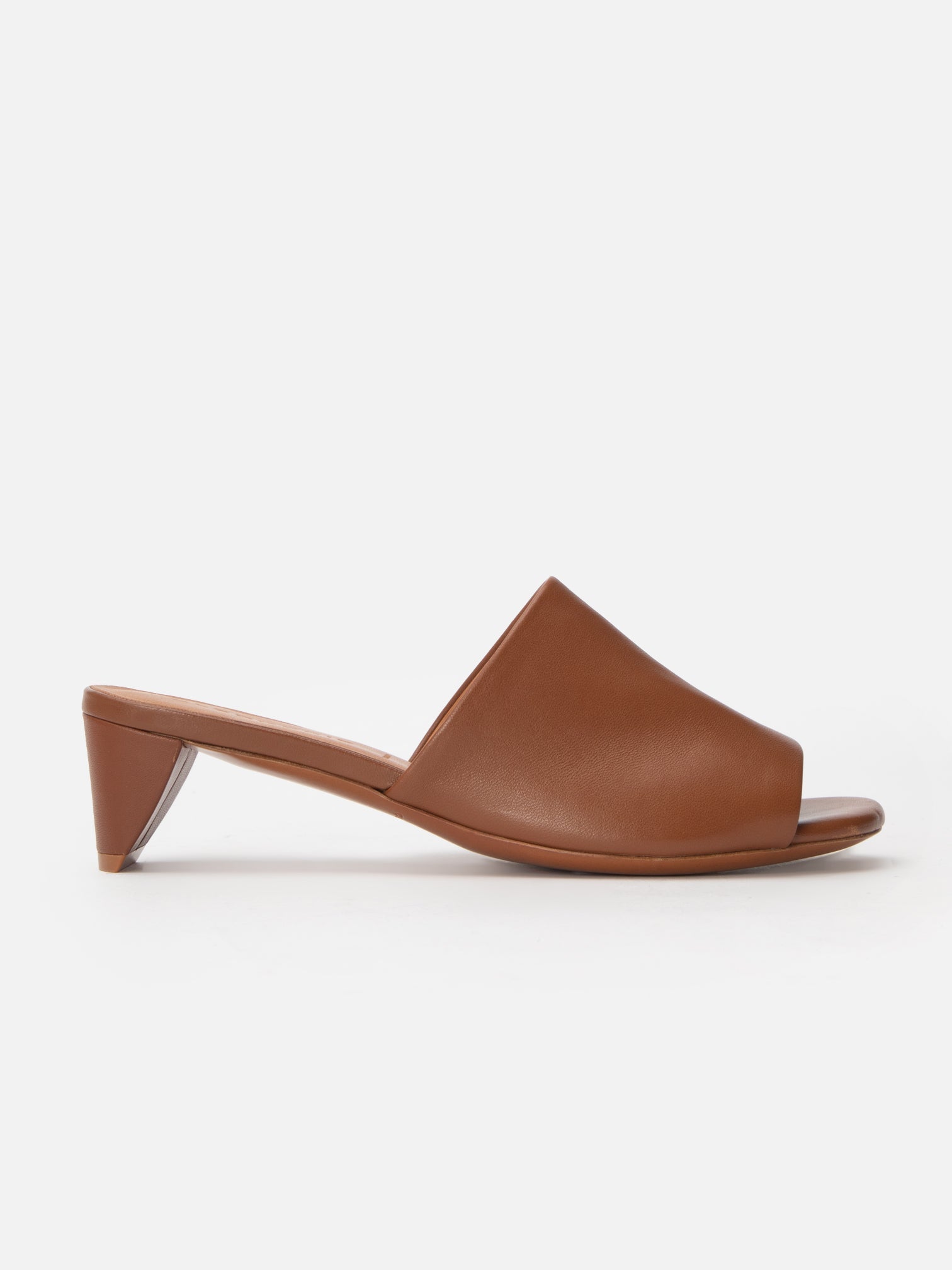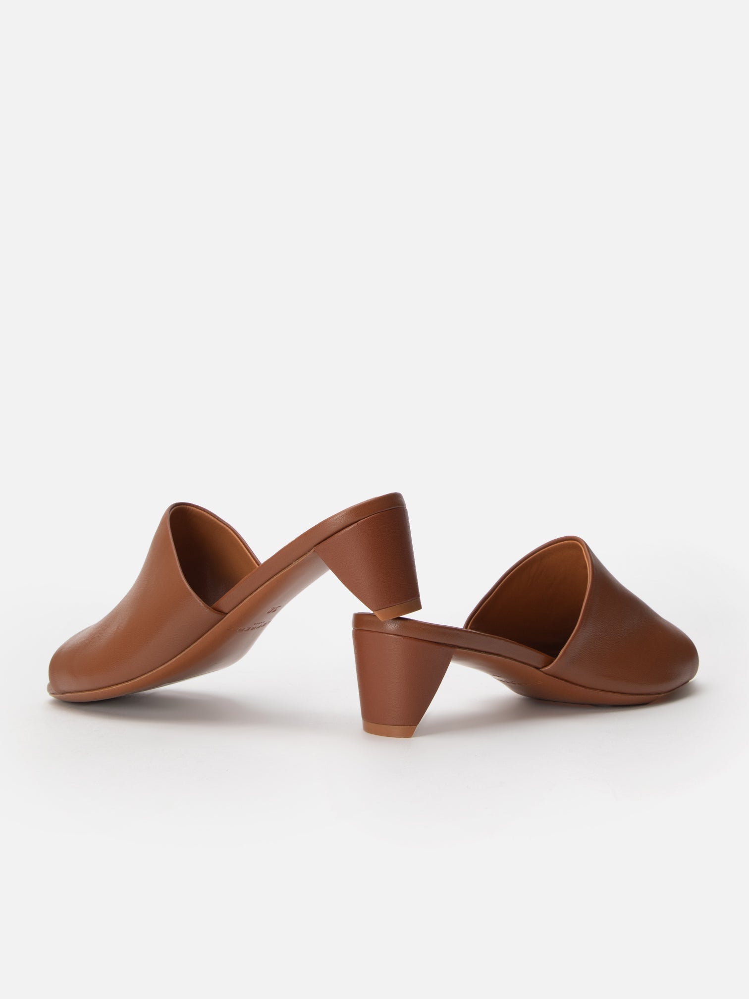 Upper: Wood lambskin / Lining: Gold goatskin / Sole: Wood smooth calfskin covered heel, amber leather sole, natural edge