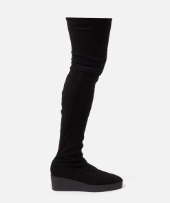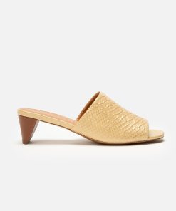 Upper: gobi metallic glossed calfskin / Lining: black goatskin lining / Sole: gobi metallic glossed calfskin covered platform, amber leather sole, black edge