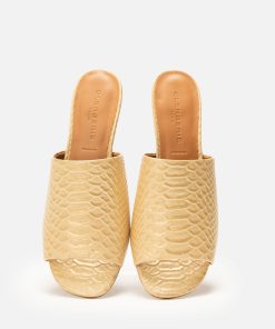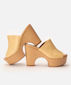 Upper: gobi metallic glossed calfskin / Lining: black goatskin lining / Sole: gobi metallic glossed calfskin covered platform, amber leather sole, black edge