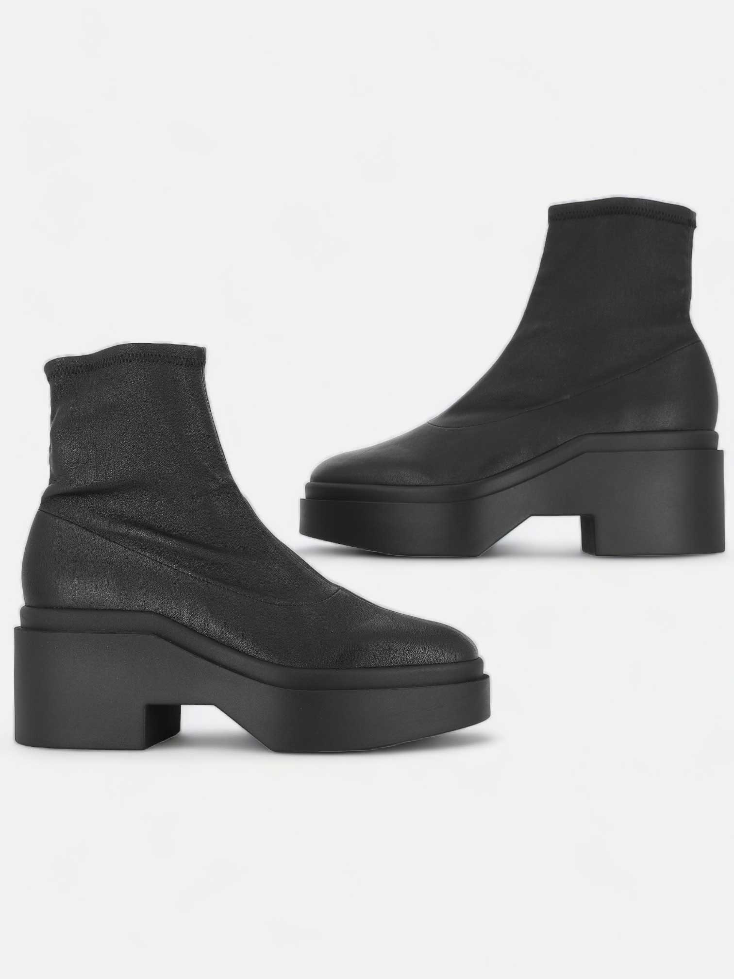 Upper: black stretch lambskin / Lining: goatskin / Sole: black rubber platform