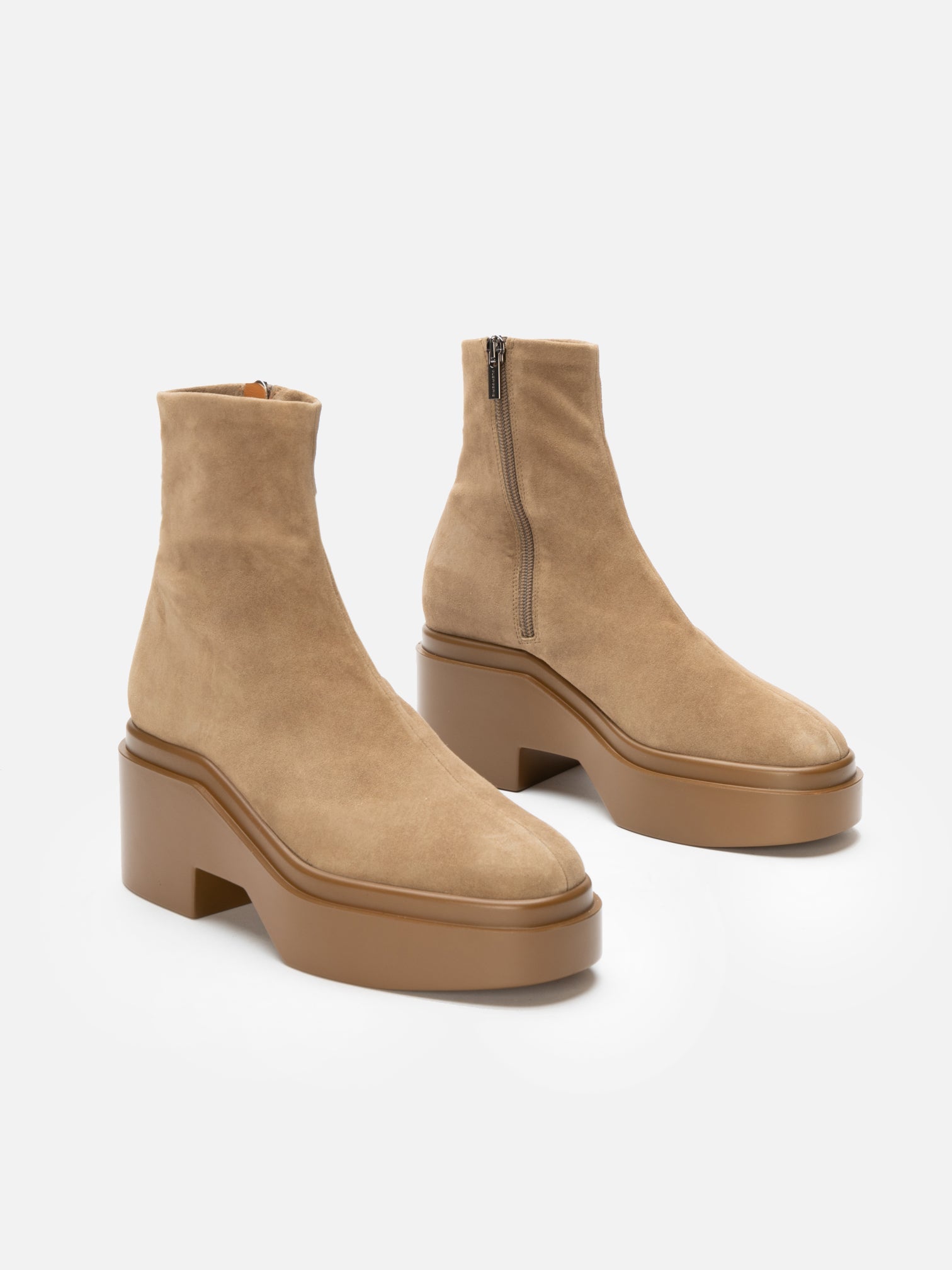 Upper: gobi stretch suede lambskin / Lining: gold goatskin lining / Sole: gobi rubber platform