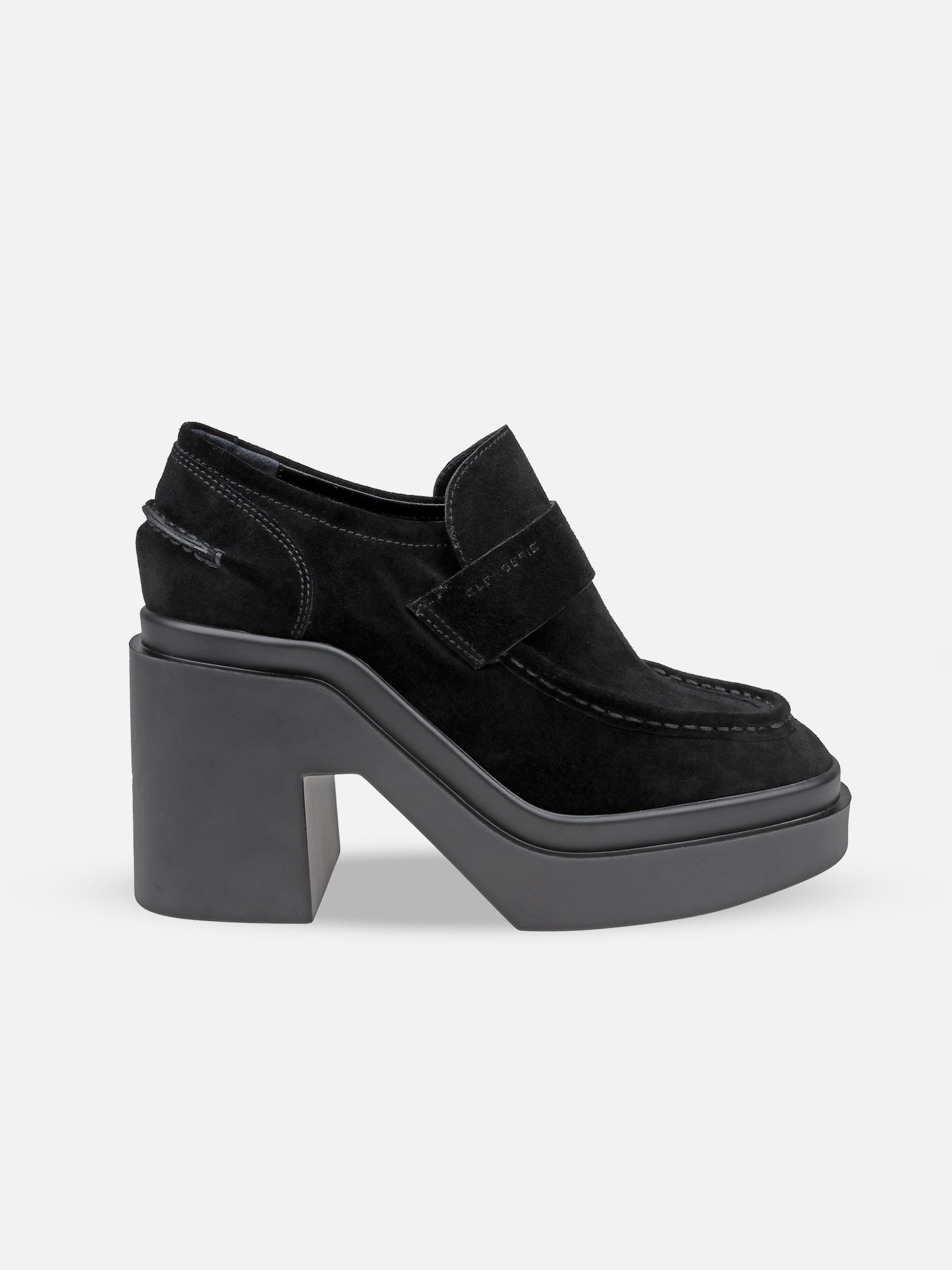 Upper: black suede split calfskin / Lining: black goatskin lining / Sole: black rubber platform
