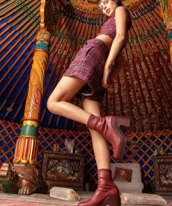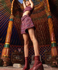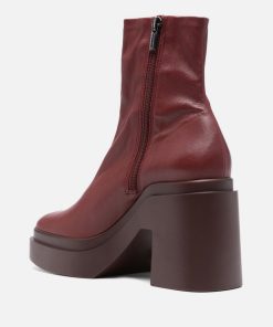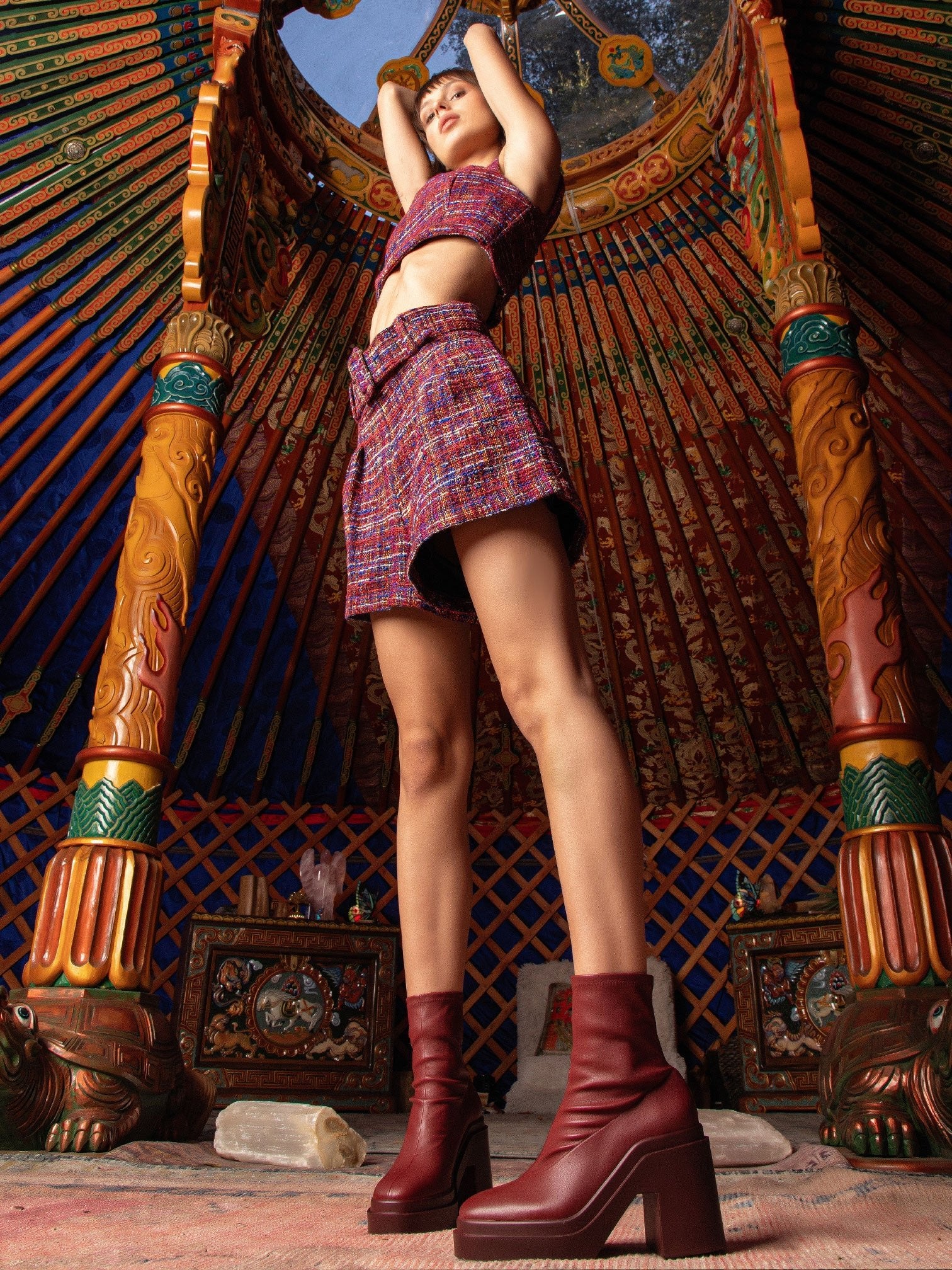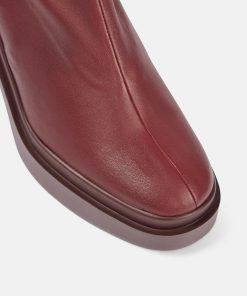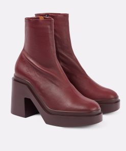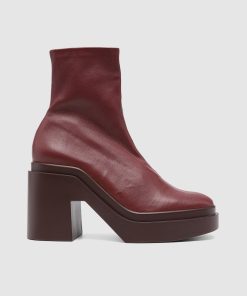 Upper: garnet stretch lambskin / Lining: gold goatskin lining / Sole: garnet rubber platform