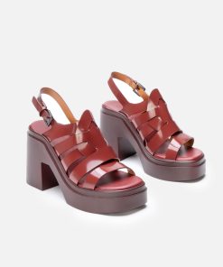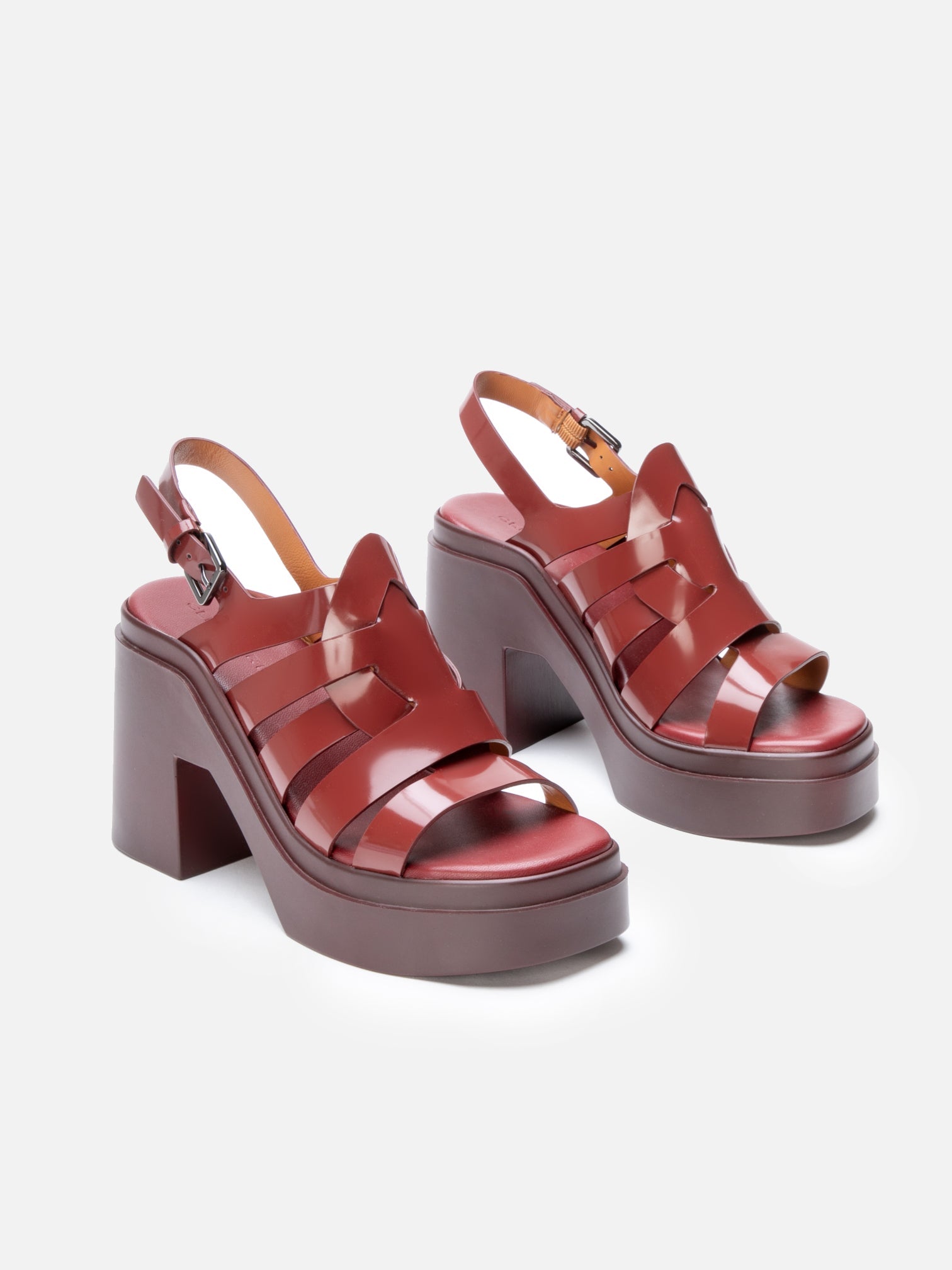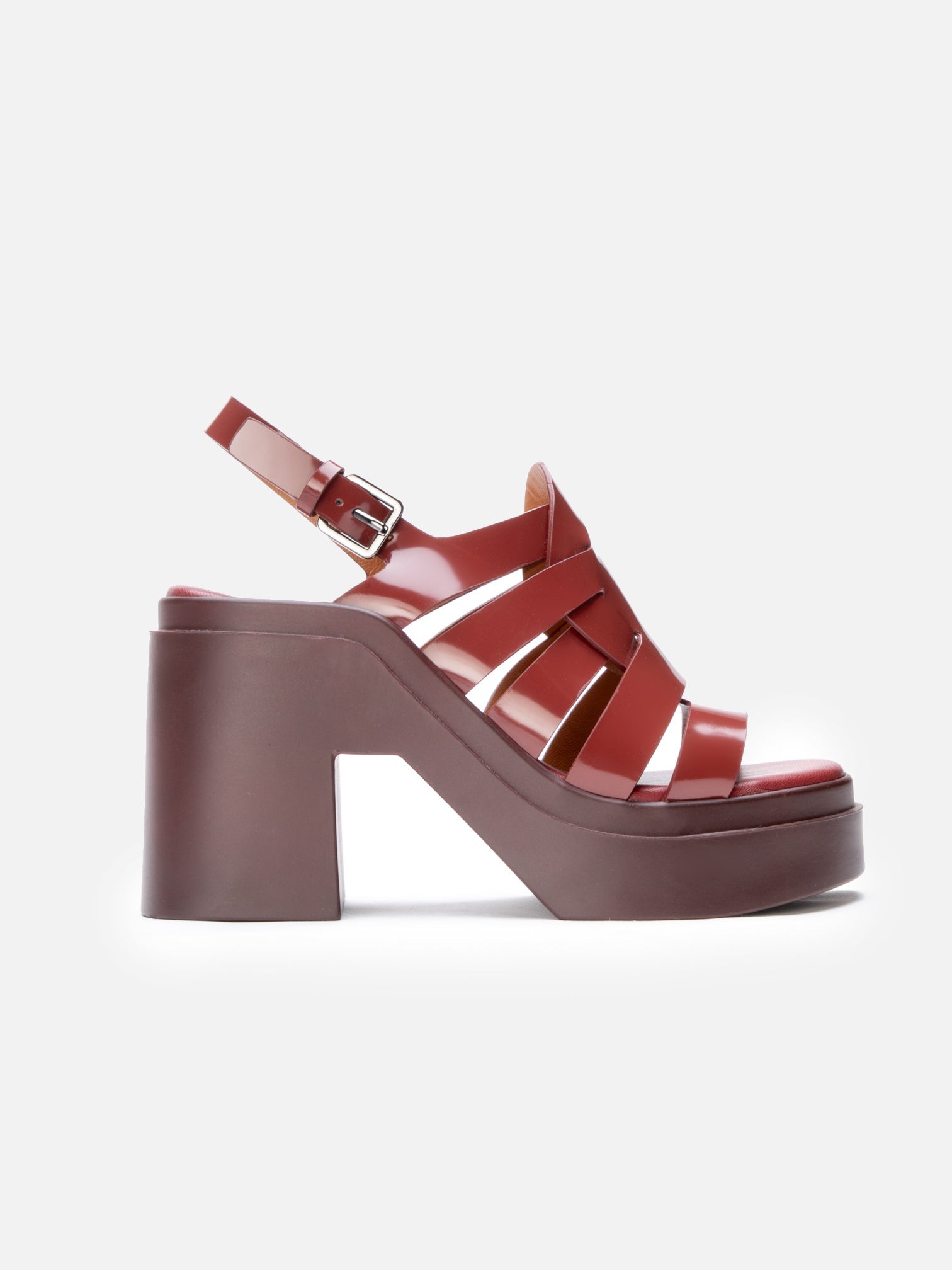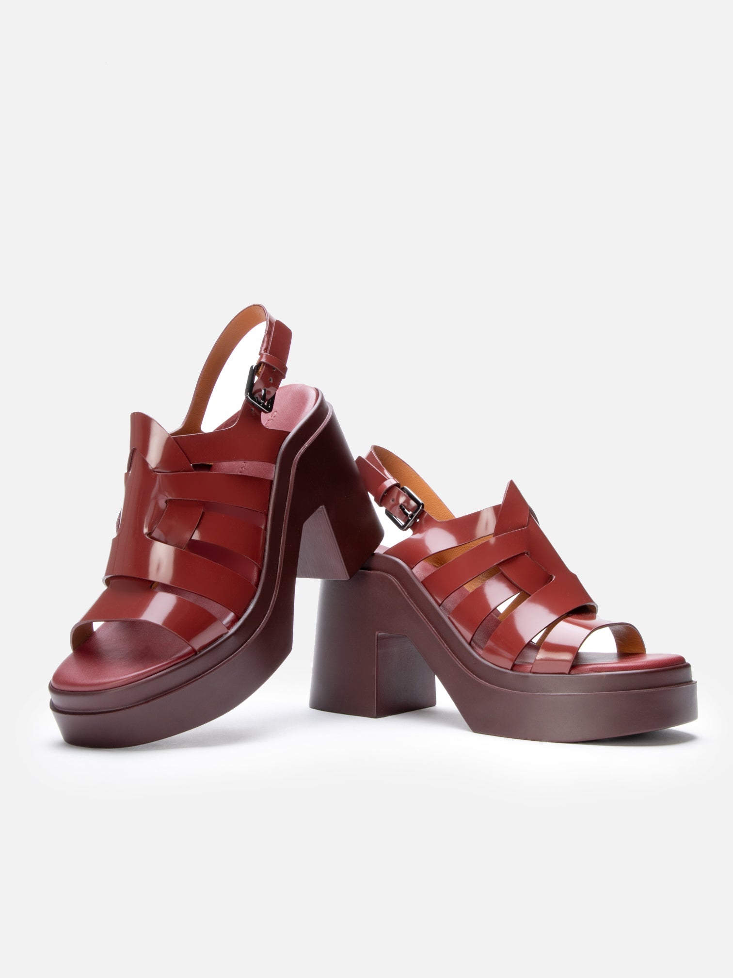 Upper: garnet glossed calfskin / Lining: gold goatskin lining / Sole: garnet rubber platform