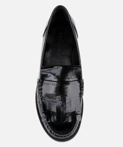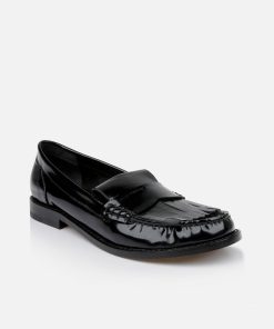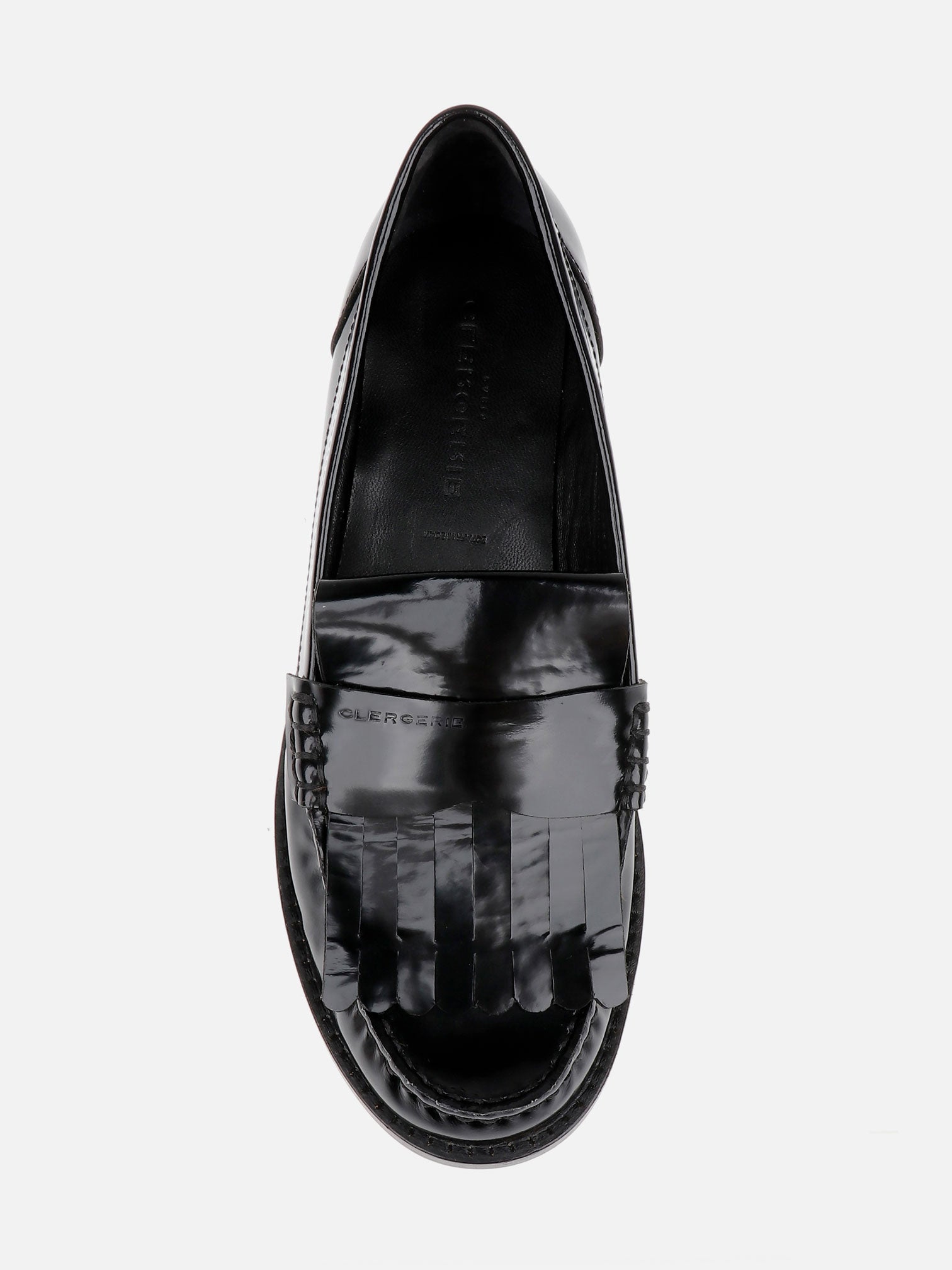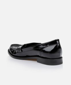 Upper: black glossed calfskin / Lining: black goatskin lining / Sole: amber leather sole, black edge