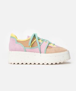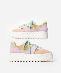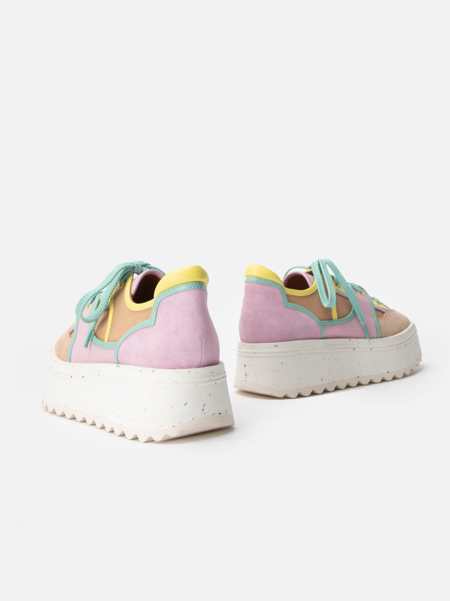 Upper: Nude suede goatskin, dolly canvas, dolly lambskin / Lining: Gold crust lambskin / Sole: Speckled rubber sole