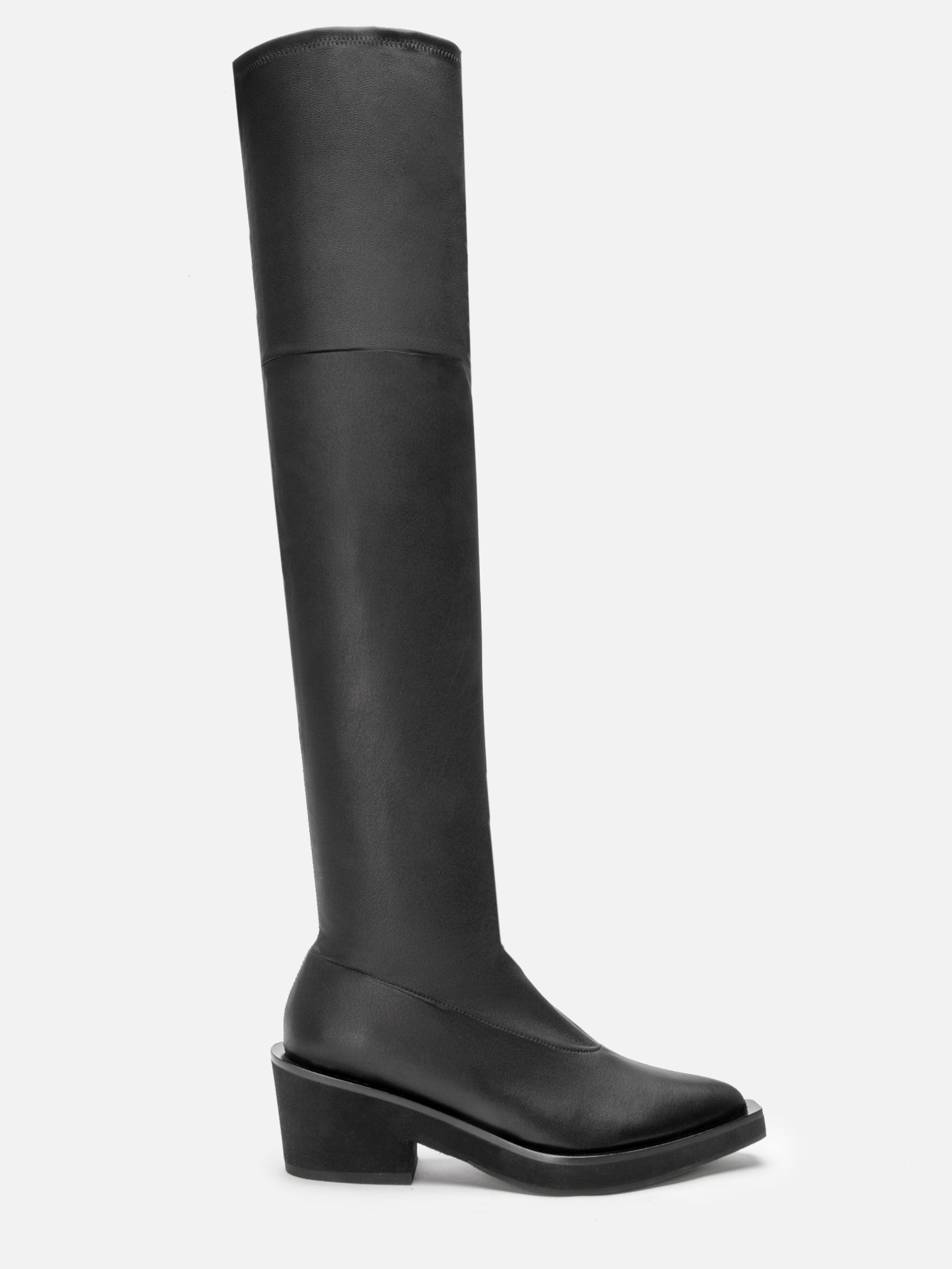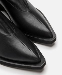 Upper: black stretch lambskin / Lining: black goatskin lining / Sole: black welt, black EVA platform, anthracite sole