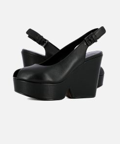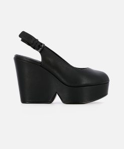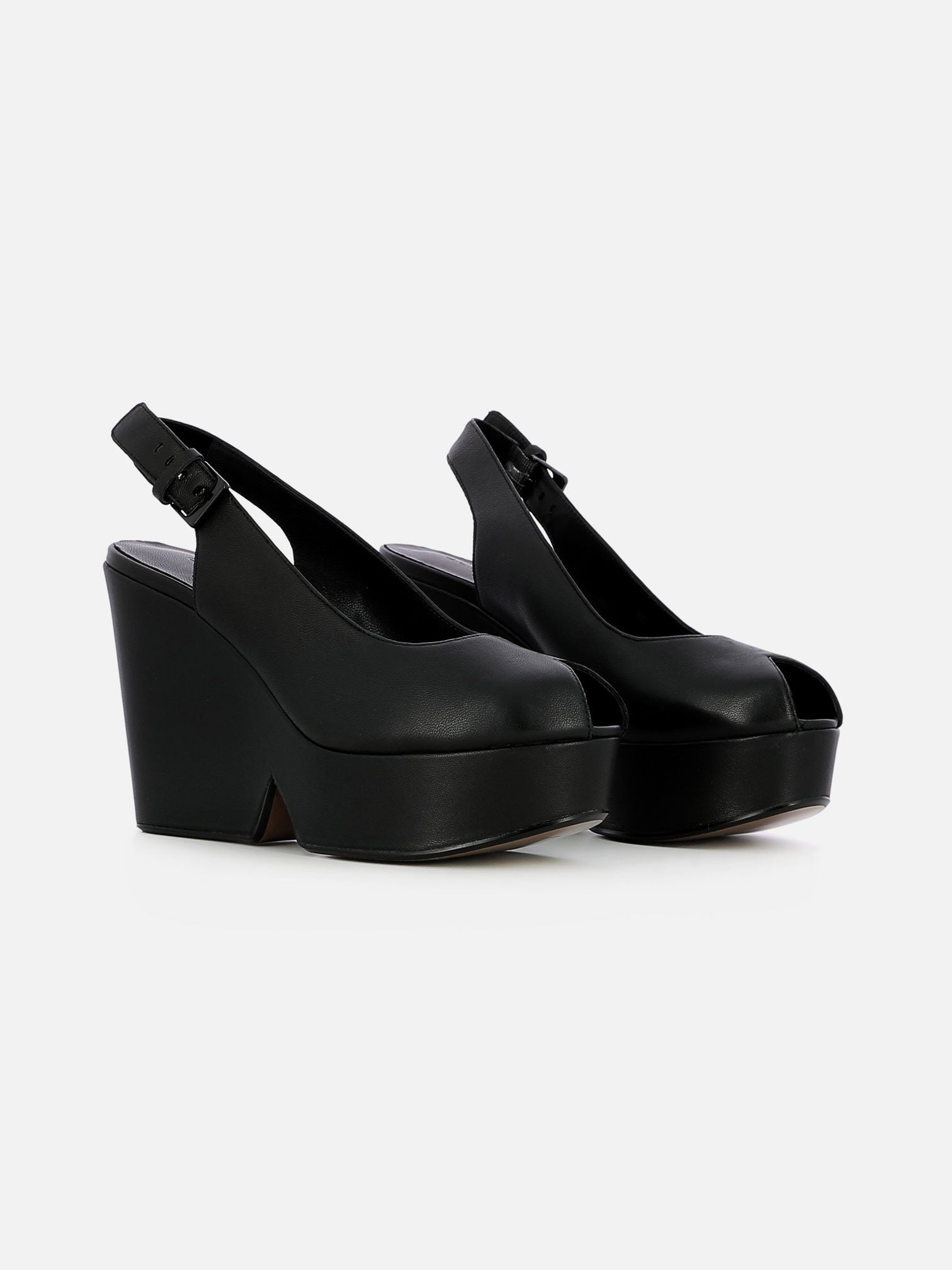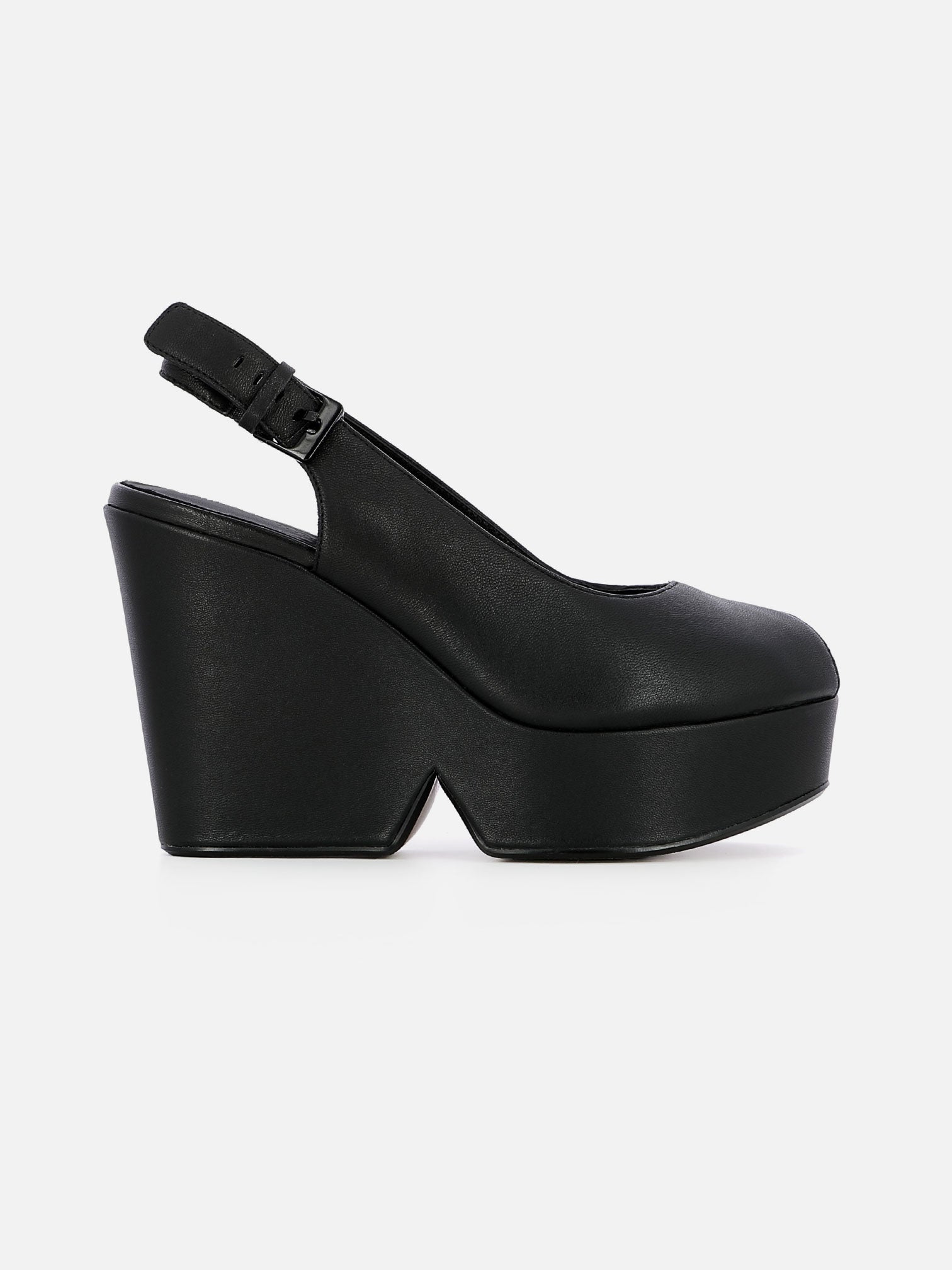 Upper: black lambskin / Lining: black goatskin / Sole: black lambskin covered platform, arizona sole, black edge