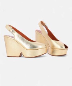 Upper: metallic lambskin / Lining: goatskin / Sole: metallic lambskin covered platform